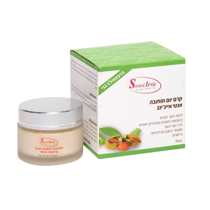קרם לחות יום חוחובה היפואלרגני לעור הפנים והצוואר, ללא פראבנים ווזלין. פורמולה עשירה בשמן חוחובה, מיקרו־קפסולות, ויטמינים A,C,E ושמנים טבעיים – לספיגה נעימה וריח טבעי עדין. מתאים לכל סוגי העור, במיוחד לעור יבש.